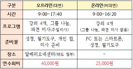 ※ 연수회는 오프라인과 온라인으로 동시에 진행되며, 프로그램에 차이가 있습니다.